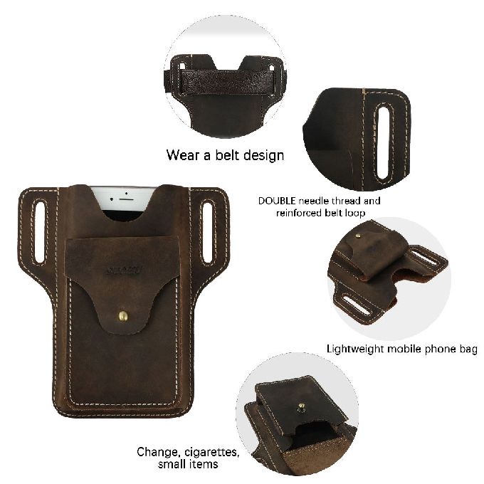 Men'S Vintage Cowhide Leather Running Belt Pouch For Mobile Images |