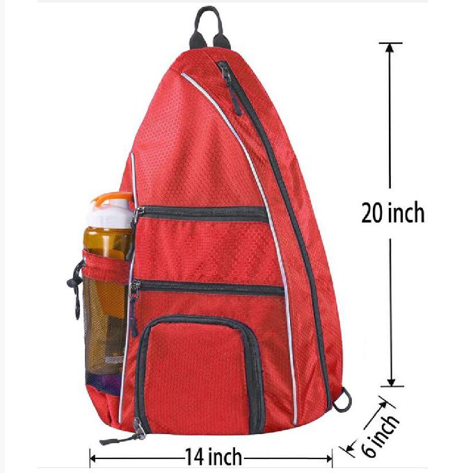 3. SUPERIOR MATERIAL: SIZE -- 14’’ W x 6’’ D x 20’’ H. The pickleball sling bag was made of high quality material, which is lightweight but sturdy. This durable professional crossbody bag is a perfect choice for women or men to organizer pickleball gear, it was designed comfortable and look great